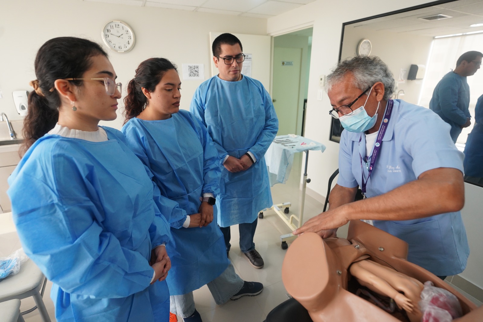 La segunda etapa, desarrollada de manera presencial en el Centro de Desarrollo de Competencias Médicas del CMP, estuvo centrada en prácticas de simulación clínica orientadas al desarrollo de destrezas en tres áreas clave: